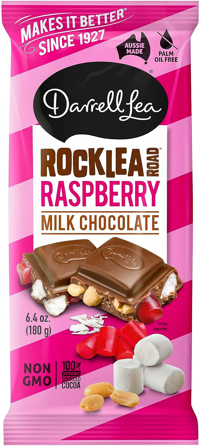 Raspberry / Frambuesa con Bombones, Cacahuetes Crujientes, Coco y Frambuesa Jellies |